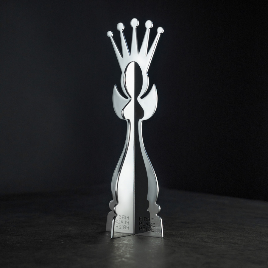Третье место занял Игорь Дыдыкин и его работа Nagrada. Ее дизайн представляет собой превращение пешки в королеву как признание профессионального роста. Фигура состоит из двух плоских частей, которые вставляются друг в друга.