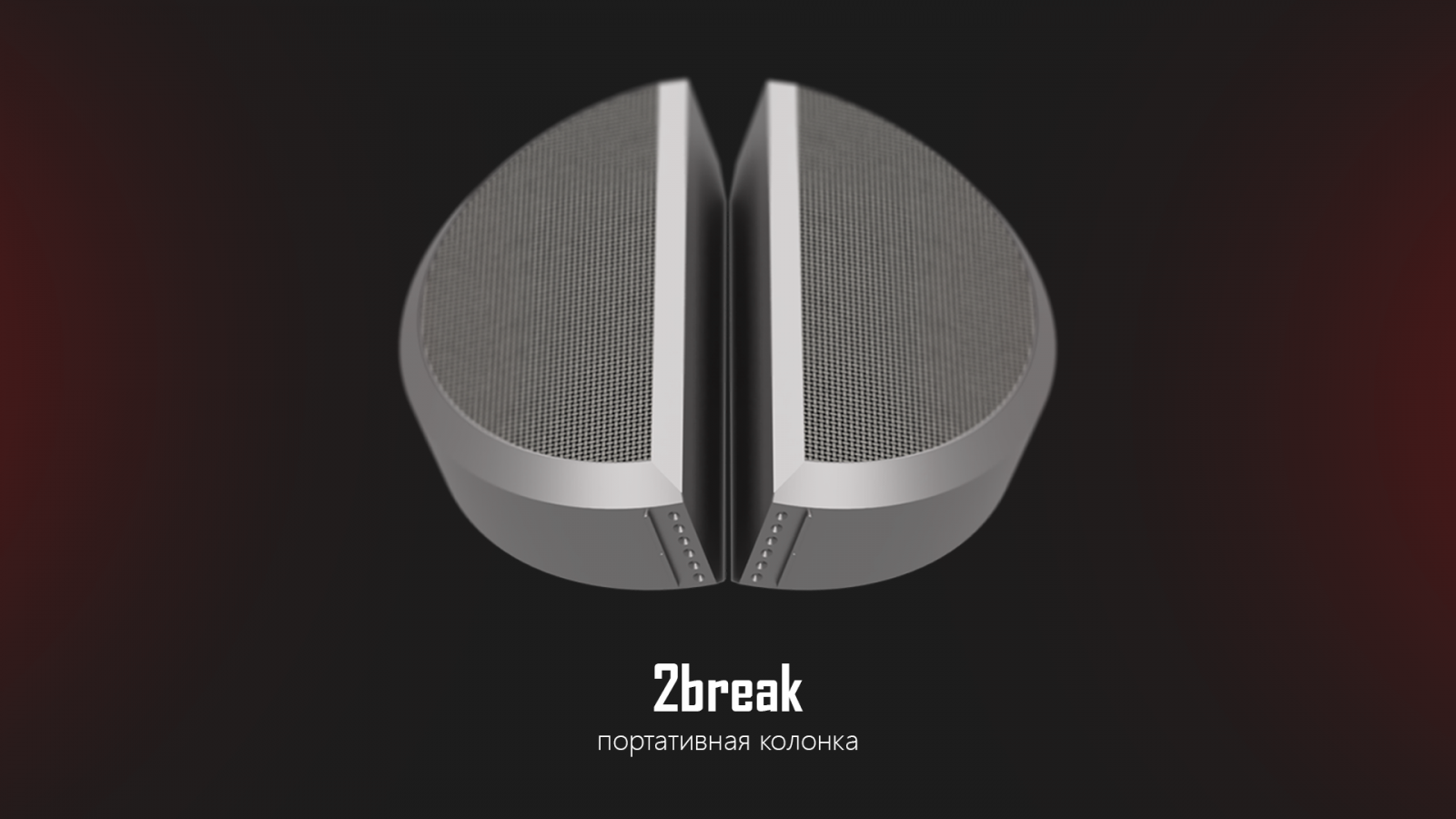 Первое место занял Андрей Зайцев и его колонка 2break. Прообразом для ее дизайна стала форма таблетки. 2break может быть разделена на две самостоятельные колонки, если это необходимо.