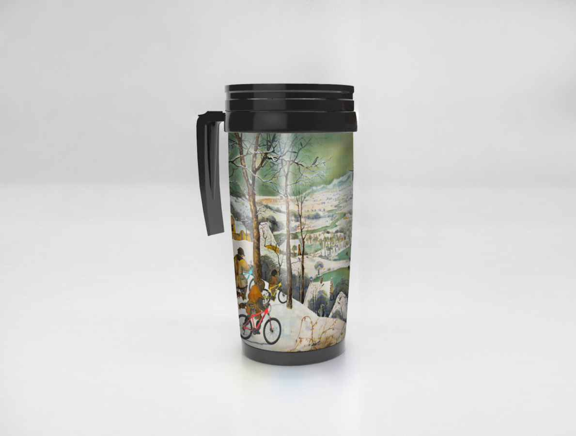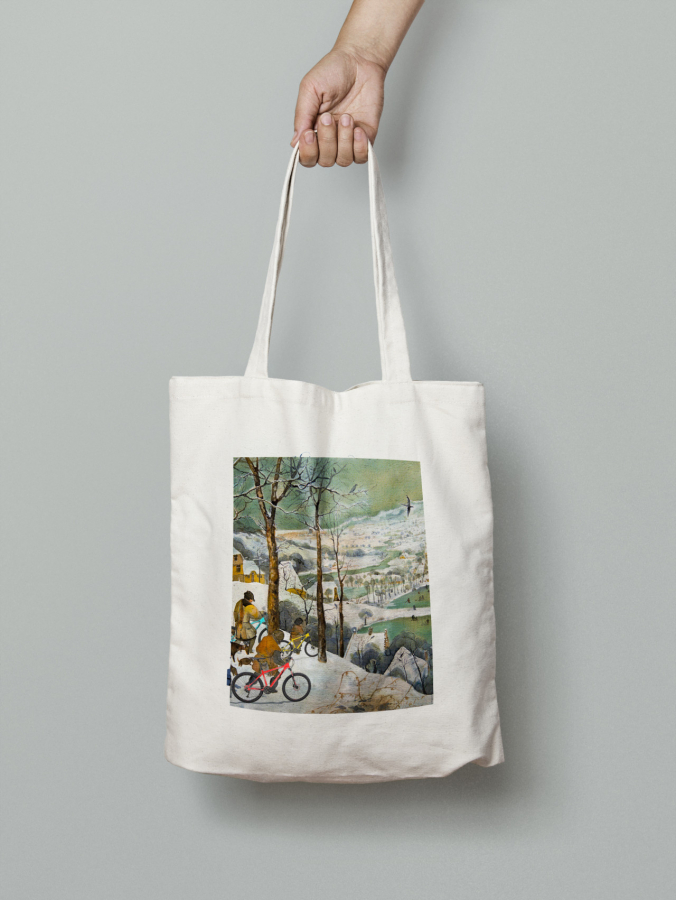 Второе место занял Владимир Пегов и его работа «Новая классика. Брейгель». В данном принте использована картина Питера Брейгеля «Охотники на снегу», в которую добавлен символ современного активного образа жизни — велосипед.
