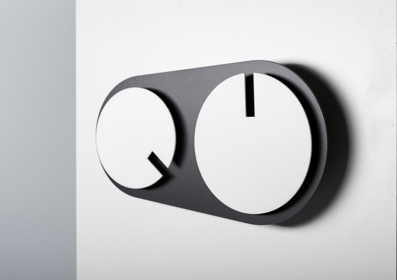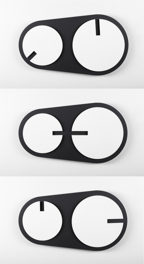 Первое место досталось Евгении Дымкиной и ее работе «Часы Диалог». Часы и минуты могут существовать отдельно, поэтому они расположены на разных дисках, но при этом элементы всегда взаимодействуют друг с другом.
