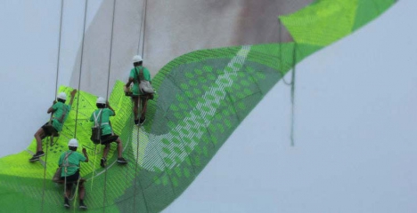 Акция, запущенная китайским подразделением компании Nike впечатлила очевидцев. В рамках рекламы новой модели Free Flyknit, сшитых по «революционной» технологии так, что они облегают ногу как «вторая кожа», Nike продемонстрировала свои технологии шитья на билборде с изображением ноги человека, на которой «швеи-альпинисты» за пару дней изготовили кроссовок.