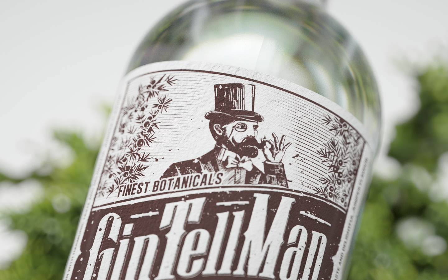 Основным элементом дизайна стал персонаж — джентльмен в пенсне и цилиндре, грациозно поправляющий усы. Естественности и натуральности дизайну добавляют кусты можжевельника, а также этикетка, выполненная на крафтовой бумаге с конгревным тиснением.