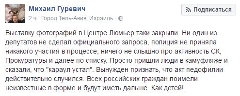 Представители Центра фотографии отметили, что в первую очередь для них важна безопасность культурных ценностей, посетителей и сотрудников. «Мы категорически не поддерживаем увеличение агрессии по отношению к культурной и выставочной деятельности в нашей стране. Призываем к трезвому восприятию негатива и неадекватности со стороны общественных деятелей, фабрикующих себе славу», — говорится на странице Центра в Facebook.
