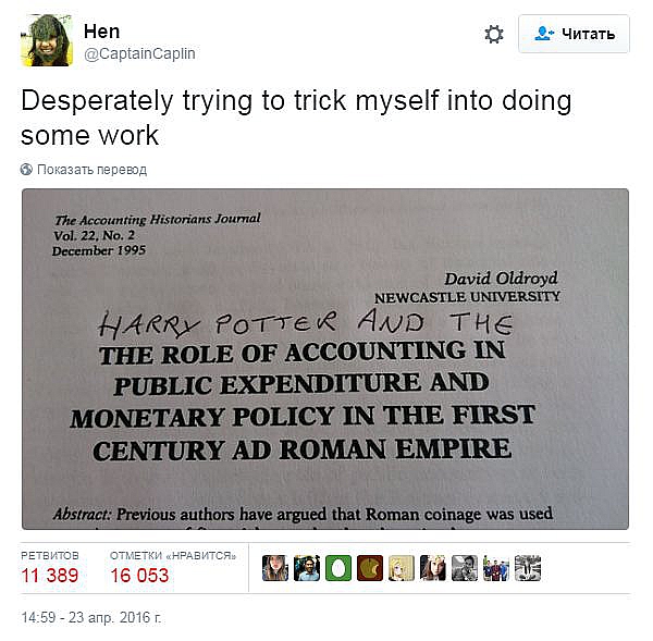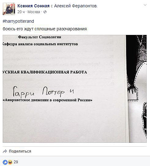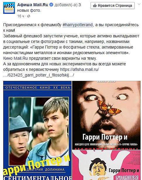 Гарри Поттер и квантовая случайность, Гарри Поттер и порнография, Гарри Поттер и стальные шары Сталина. Герой книг Джоан Роулинг оказался в центре флешмоба, захватившего социальные сети. Начиналось все как лекарство от скуки: девушка изучала научную статью о монетарной политике в Римской империи и, чтобы заставить себя работать, приписала к названию «Harry Potter and».