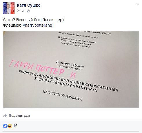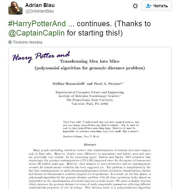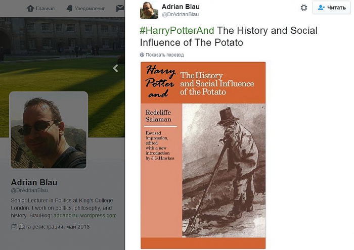 Идея пользовательницы CaptainCaplin пришлась по вкусу ученым - они начали присоединять имя волшебника к книгам, диссертациям и академическим статьям. Поттера использовали и экономисты, и историки, и филологи, и физики. Старший преподаватель лондонского King's College Эдриан Блау предложил сопровождать публикации хэштегом #HarryPotterAnd. Позже к нему добавился #PotterizeYourThesis.