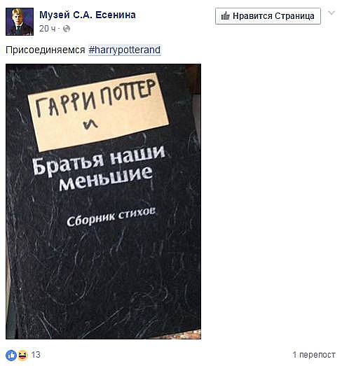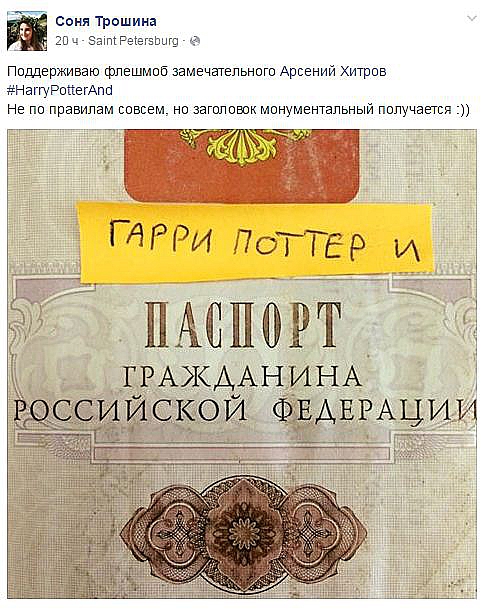 Российские пользователи с удовольствием подхватили флешмоб. Соцсети наводнили фотографии курсовых работ, отчетов, а также реклама. Подхватить тему решили различные бренды и организации. Игра World of Tanks соединила Поттера с упомянутыми стальными шарами Сталина, IT-компания ESET решила, что Поттер хорошо сочетается с юбилейным корпоративным изданием, ресторан «Чайхона №1» приписал литературного героя к салату «Дудляш».