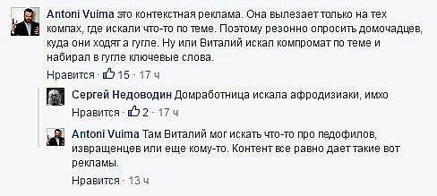Комментаторы уже посоветовали Милонову проверить запросы в поисковике и не обижаться на систему, которая показывает рекламу в соответствии с интересами пользователя. Отметим, что реклама «стоячка» ведет на сайт интернет-магазина «Бутик Боффо», который продает бизнес-книги и деликатесы для гурманов.