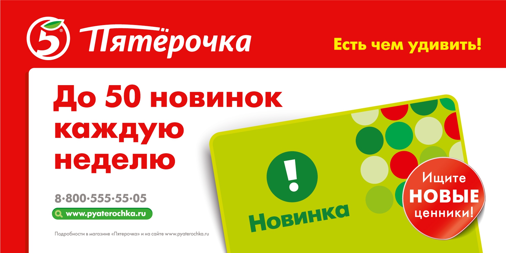 Изменения в работе магазинов «Пятерочка» – результат маркетинговых исследований, опросов фокус-групп покупателей, анализа обращений на «горячую линию» торговой сети, сообщили в управляющей группе. Идея концепции отражена в слогане новой рекламной кампании торговой сети: «Пятерочка» - есть чем удивить!».