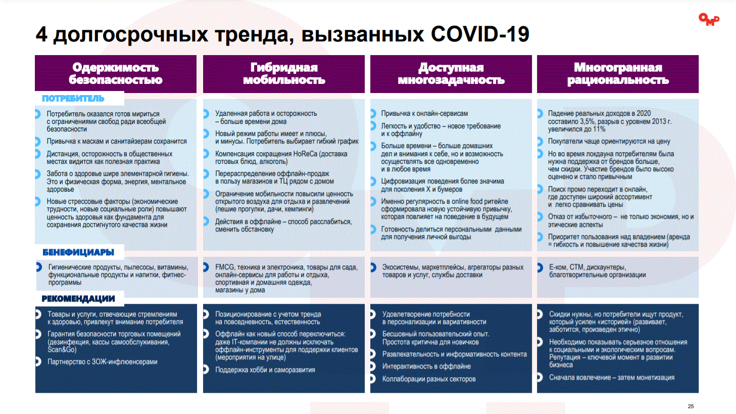 Во многом эти тренды взаимосвязаны и роль каждого будет варьироваться в зависимости от маркетинговых задач, но поведение потребителей и дальше будет определяться запросами, не возникшими, но четко проявившими себя в период пандемии.