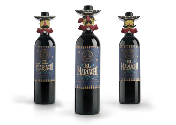 Коллекция вин El Mariachi изначально нацелена на молодую аудиторию ценителей этого напитка, так как именно эта целевая группа представляет наибольший интерес для производителей вин юга США. В агентстве решили пойти дальше стандартных этикеток и создать дополнительный элемент идентификации бренда, который бы наделял его большей эмоциональностью и личностными характеристиками. Так, родилась идея разработать нэкхенгеры для бутылочного горлышка в виде голов трех музыкантов-мариачи, которые бы стали неотъемлемой частью всей визуальной композиции, сливаясь воедино с бутылкой.
