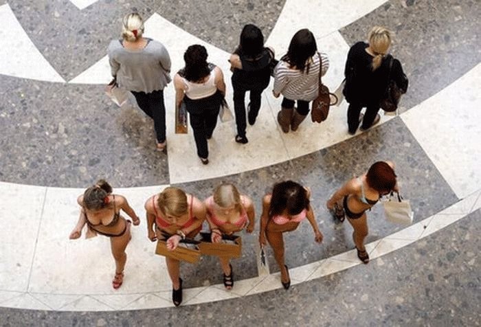 Один из киевских торговых центров провел необычную акцию-распродажу под названием «Пришла раздетой – ушла одетой». Желание получить скидку в назначенный день привело в торговый комплекс десятки обнаженных девушек и даже мужчин.