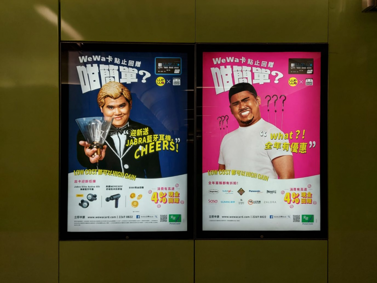 В Гонконге на остановках общественного транспорта появились рекламные баннеры кредитных карт WeWa с пародиями на популярные мемы. Среди изображений можно узнать Леонардо ДиКаприо с бокалом мартини из фильма «Великий Гэтсби», удивленную коалу и смущенного игрока NBA Ника Янга. Плакаты сопровождает текст с отсылкой к оригиналам: «Что?! Акции круглый год».