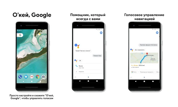 Голосовой помощник точно также вызывается командой «О'кей Google» или удерживанием кнопки «Домой». С помощью него можно звонить, отправлять сообщения, управлять календарем, включать музыку, пользоваться навигатором, а также узнавать прогноз погоды, новости и искать любую информацию в интернете.