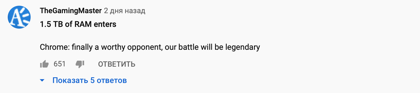 Блогер сказал, что хочет провести этот же эксперимент с Firefox и Safari. В комментариях под роликом пользователи шутили о жадности браузера и нарекли этот баттл легендарным.