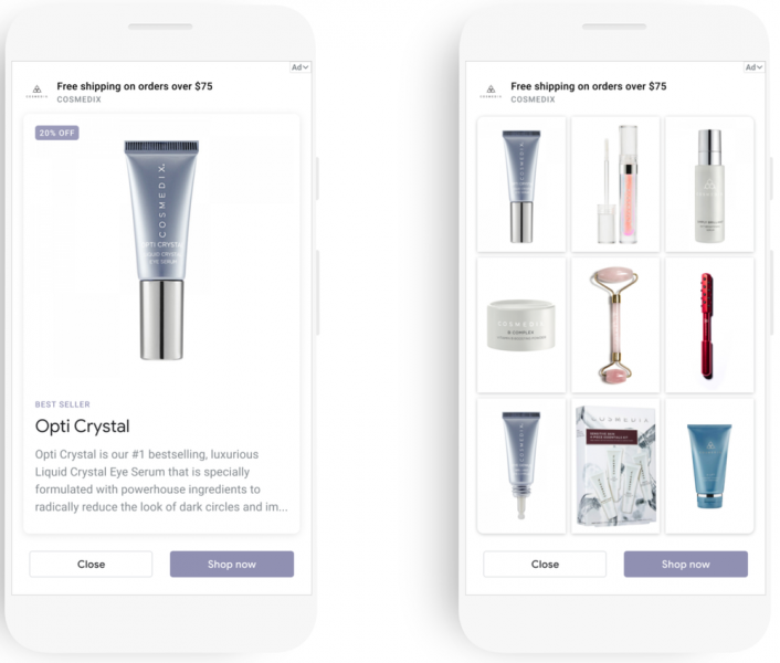 Еще в Google добавили новые креативные макеты, автоматически сгенерированные видеообъявления и динамические объявления, в которых можно разместить название компании рядом с логотипом, выделить последние рекламные акции или определенный продукт.