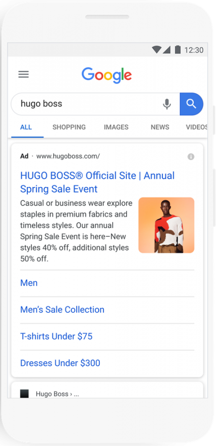 Google анонсировала функцию вставки изображений в объявления, которые появляются в поисковой выдаче. Новый инструмент уже опробовали в Hugo Boss: представители компании заявили, что ROI (возврат инвестиций в продвижение) увеличился в 2,5 раза, а число кликов к числу показов — на 5%. Также Google позволила выделять некоторые особенности в объявлениях — например, быструю и бесплатную доставку. Это может увеличить показатель конверсии на 9%, говорят в корпорации.