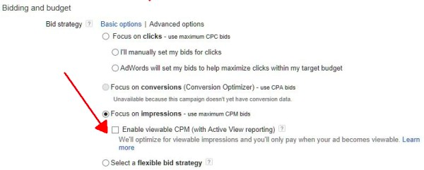 Рекламодатели Google теперь могут делать ставки и задавать цены за тысячу показов в видимой области экрана. Новая стратегия назначения ставок позволяет платить только тогда, когда на веб-странице отображается не менее 50% объявления.