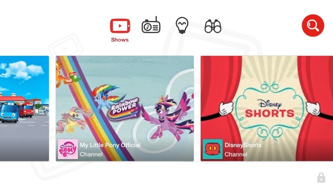 Приложение состоит из четырех разделов: мультфильмы, музыка, обучающие программы и передачи для развития. Изначально детская версия YouTube должна была стать платным приложением, однако сейчас она доступна в американском AppStore и PlayMarket бесплатно.