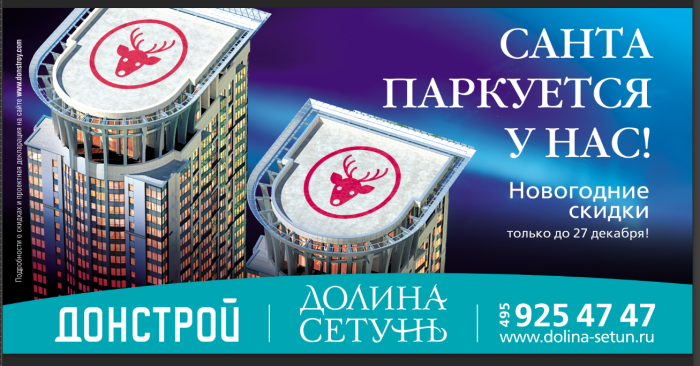 Sostav.ru выяснил, кто является автором рекламной кампании «Донстроя», которую в настоящее время проверяет на этичность антимонопольная служба. Как оказалось, проект предновогодней кампании ЖК «Долина Сетунь» со слоганом «Деда Мороза нет, а скидки - есть» разрабатывало агентство AnyBodyHome!, которое сотрудничает с застройщиком последние три года.