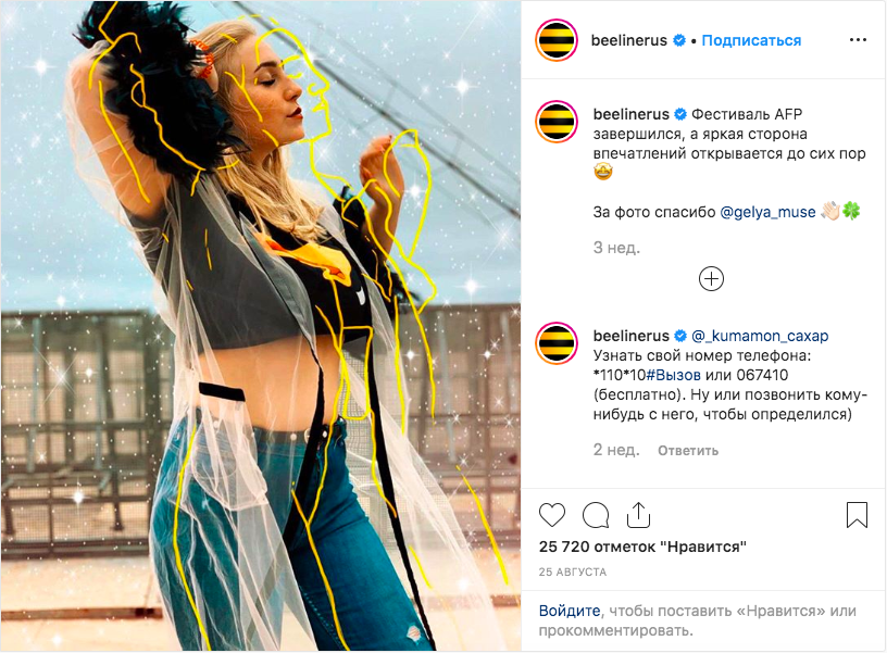 Посты «Билайн», получившие наибольшее число реакций в Instagram