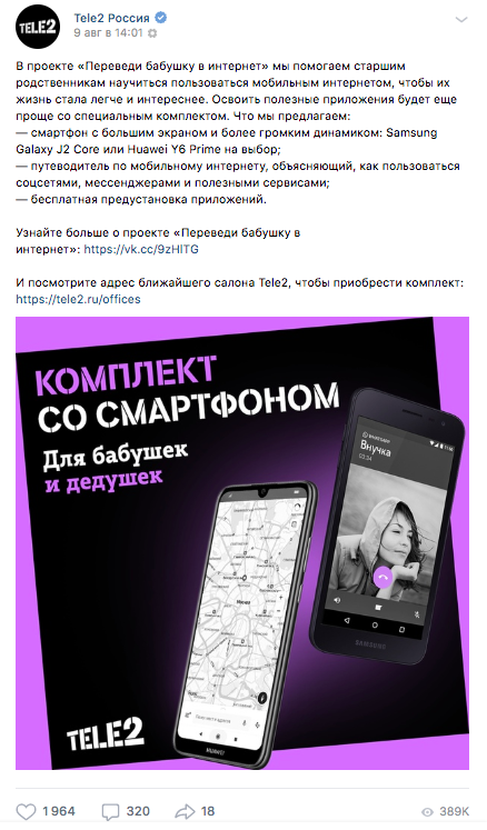 Содержание постов приобретает новые смыслы, а некоторые из них могут восприниматься как Hero-контент. Ведь речь идет не просто еще об одном улучшении многочисленных опций, а решении общественно-значимой проблемы — социализации пожилых людей. Ведь без смартфона сегодня социализация не может быть полной.