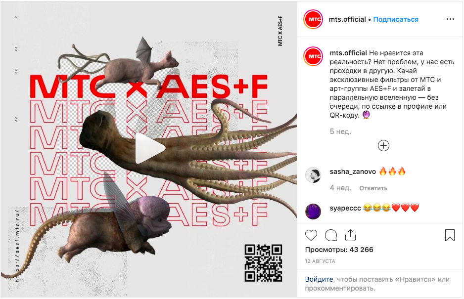Посты МТС, получившие наибольшее число реакций в Instagram
