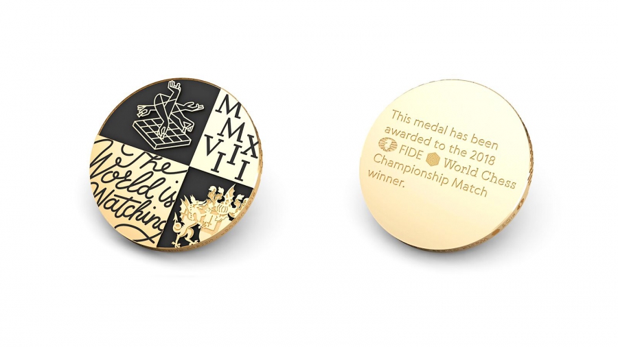 С тех пор, как в 2012 году Pentagram разработало айдентику для World Chess, победитель чемпионата награждался медалью-гексагоном с крупным знаком World Chess.