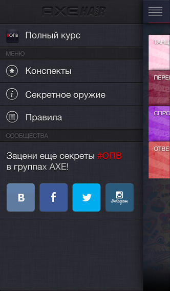 И, наконец, красная кнопка в правом углу рядом с логотипом AXE HAIR #ОПВ, она ведет к самому важному уроку и главной тайне #ОПВ. Чтобы добраться до нее, придется разлочить шесть замков на экране, которые необходимо нажать одновременно.