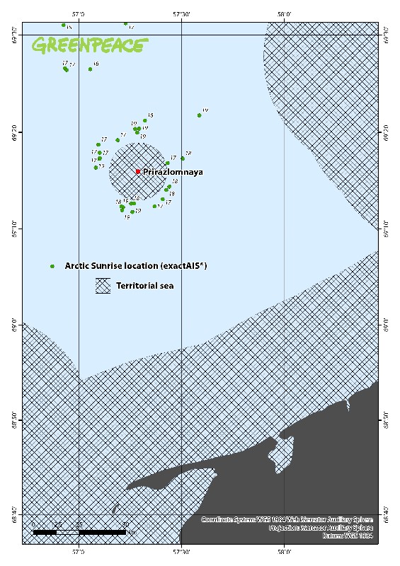 На момент атаки судно находилось за пределами территориальных вод России, утверждает Greenpeace. Ледокол курсировал вокруг нефтяной платформы «Газпрома» на расстоянии трех морских миль, то есть за пределами так называемой опасной для плавания зоны. Вчера вечером связь с экипажем была утеряна, сообщает Greenpeace.