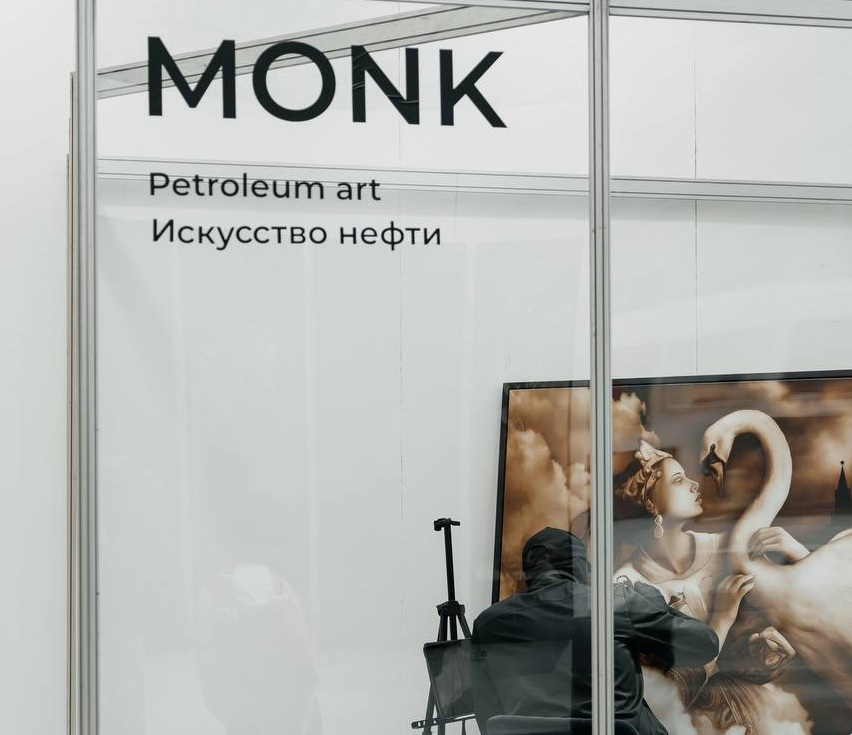 MONK — современный художник, работающий в направлении нефтизм. В своих произведениях он использует чистую нефть. Главная особенность — полная анонимность: он не раскрывает личности, прячет лицо и работает в закрытой мастерской. На момент старта сотрудничества картины художника не были представлены ни в одной российской или зарубежной галерее. Команда
