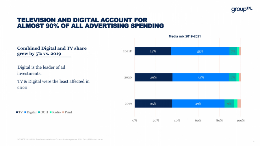 «Оживление рекламного рынка позитивно, однако повышенный спрос — это риски нехватки качественного инвентаря, особенно в «высокий сезон». Поэтому как никогда становится выигрышной стратегия долгосрочного планирования, также важна своевременность букирования размещений», — отметили в GroupM.