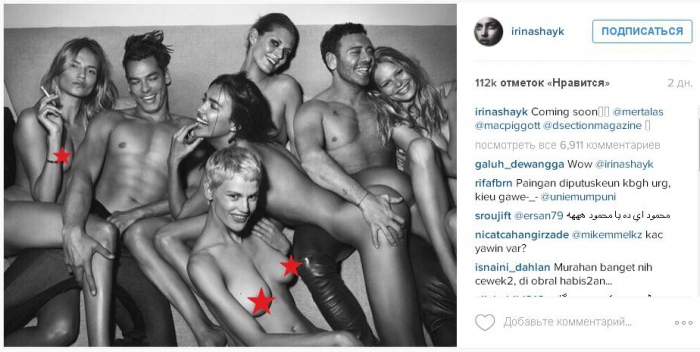 Сегодня интернет-пользователи cо всего мира горячо обсуждают новую фотографию Ирины Шейк, которую звезда опубликовала в своем Instagram. На черно-белом снимке обнаженная модель, стоя в откровенной позе, веселится в окружении раздетых мужчин и женщин.