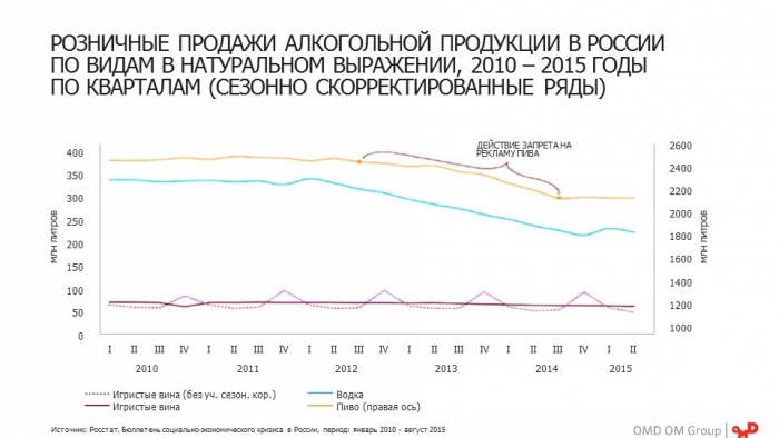 - в 2014 году поправки к закону вступили в силу во второй половине лета и сезон подходил к концу, плюс маркетинговые планы на год были уже зафиксированы и летом было невозможно кардинально изменить маркетинговую стратегию.