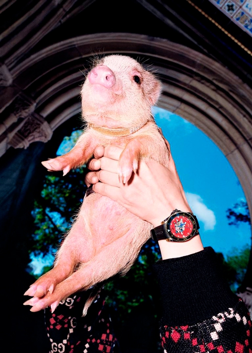 В фотосессии для рекламной кампании бренда участвовали и самые настоящие поросята, которые вместе с моделями прошлись по главным улицам Нью-Йорка и посетили роскошные апартаменты города.