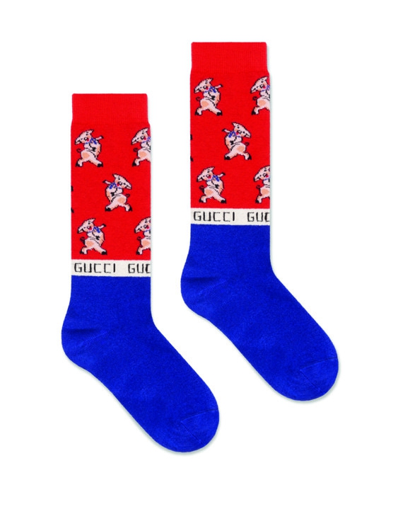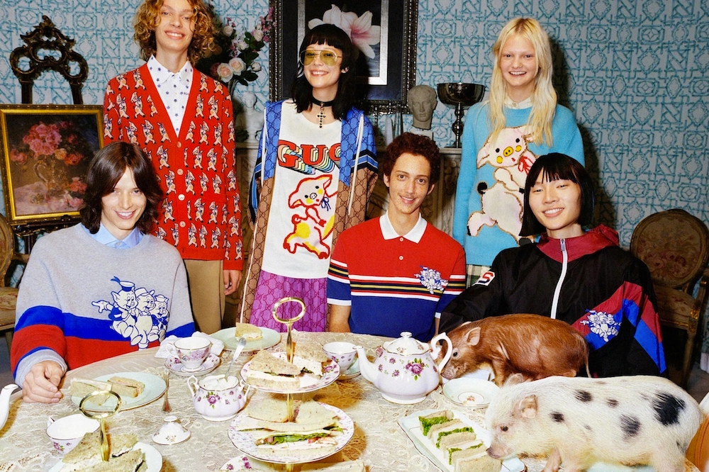 Сообщается, что витрины фирменных магазинов Gucci тоже будут украшены в стилистике произведения: залы будут выполнены в красном цвете и с изображениями поросят на стенах и на полу. Так как коллекция приурочена к Китайскому Новому году, бренд планирует продавать товары в китайской новогодней упаковке.