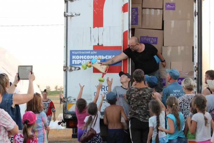 28 июля в 11-00 по московскому времени две фуры с гуманитарной помощью, сбор которой был организован компанией Desheli при поддержке ИД «Комсомольская правда», сделав по пути остановки в Туле, Калуге, Брянске, Орле, Курске, Воронеже и Каменск-Шахтинском, прибыли в Ростов-на-Дону.