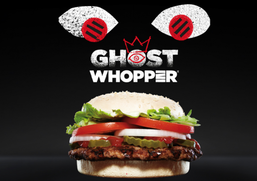 Не мог бренд в этот праздник пройти мимо своего меню. Burger King приготовил Ghost Whopper, знаменитый гамбургер с белым сыром чеддер и мягкой булочкой.