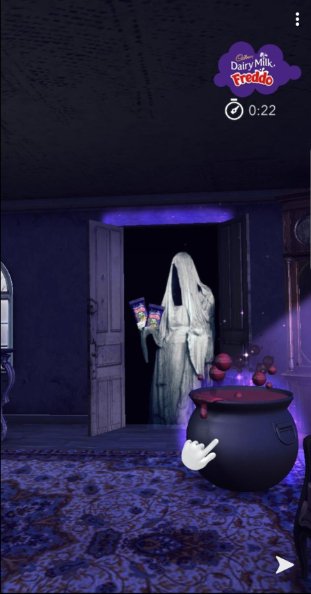 Cadbury разработал AR-активацию для Snapchat. С ее помощью пользователи могут прогуляться по дому с привидениями, наполненному сладостями Cadbury.