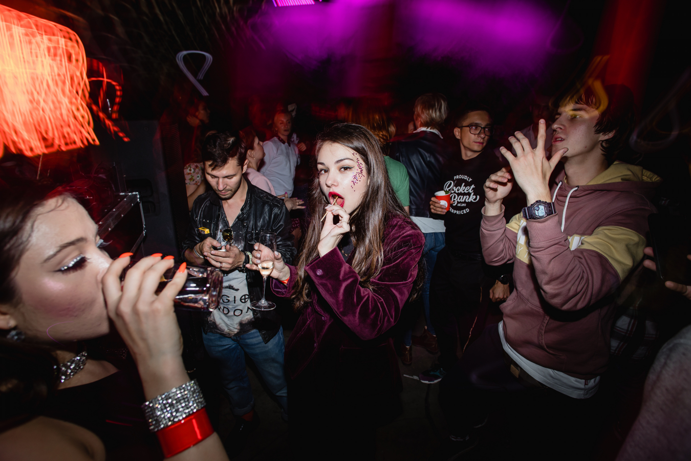 Пледы, подушки, бар, гирлянды и очень странные дела. Закрытый ивент (количество мест было ограничено) прошел в стиле Америки 80-х. Гости были в костюмах, обладатель лучшего получил тематический мерч «Рокетбанка».