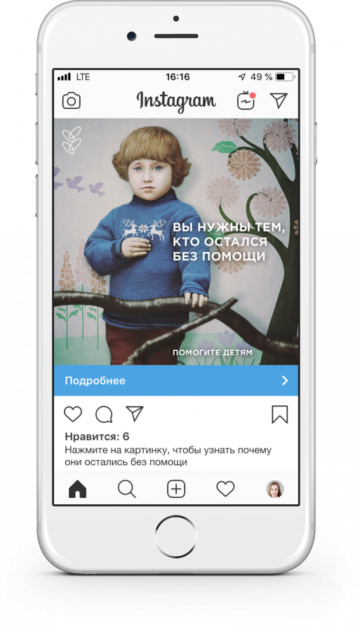 В преддверии Дня защиты детей в социальной сети Instagram и на сайте РБК появилась социальная реклама в виде баннера с фотографией маленькой девочки, одиноко стоящей напротив фотокамеры. Заголовок призывал помочь тем, кто остался без помощи. И, конечно, этот образ тронул многих пользователей. Однако после нажатия кнопки «Помочь» они узнавали, что за этой фотографией скрывается долгая жизненная история, и что на самом деле этой девочке уже далеко за 60.