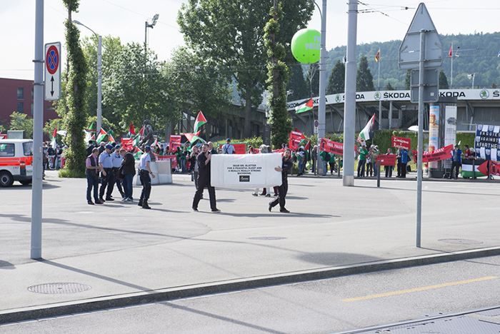 Матрас был вынесен участниками кампании на улицу 29 мая, во время конгресса ФИФА в Цюрихе, за четыре дня до экстренной пресс-конференции Международной федерации футбола, когда Блаттер и объявил, что покидает свой пост.