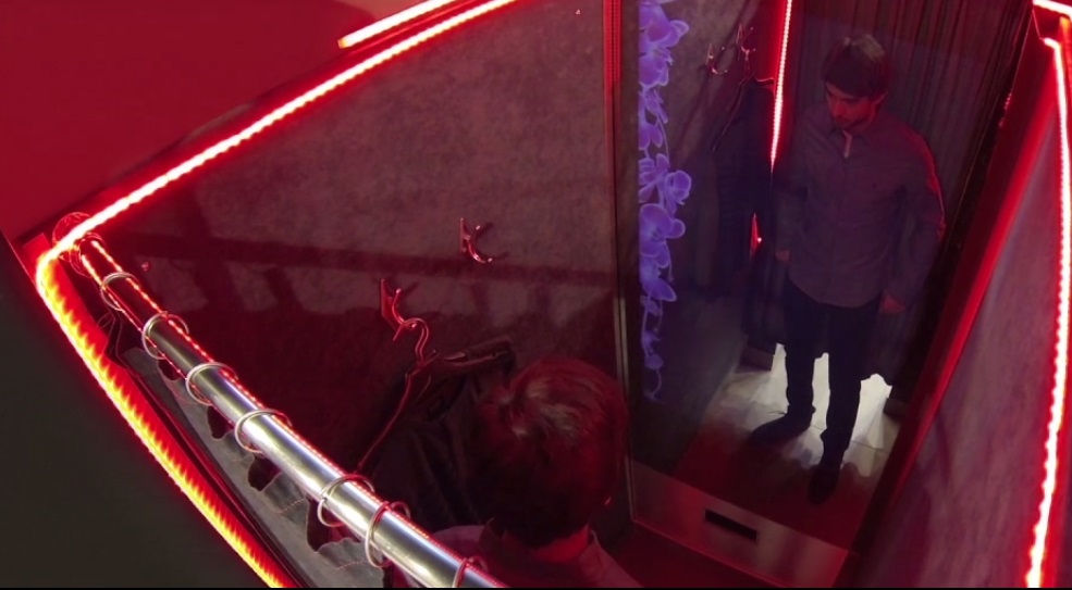 Датчики реагировали на присутствие человека и активировались по истечении 4 минут. Зеркало становилось экраном и начинало показывать женственные картинки, а вкрадчивый голос напоминал о необходимость сделать педикюр и эпиляцию.