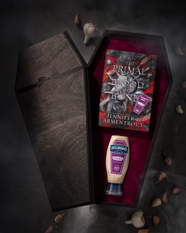 Бренд майонеза Hellmann’s представил необычный проект — книгу с ароматом чеснока. Это лимитированное издание романа Дженнифер Арментроут, автора популярной фэнтези-серии Blood and Ash («Кровь и пепел»), выпущенное в рамках продвижения нового тома цикла The Primal of Blood and Bone («Древний из плоти и крови»).