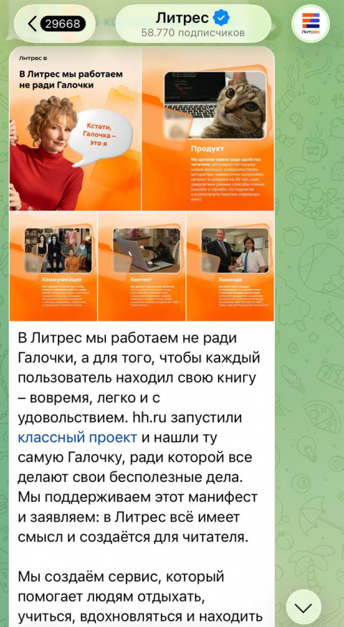 Вместе с hh᎐ru Галочка запускает публичный манифест — перестать работать ради нее и начать искать работу по душе.