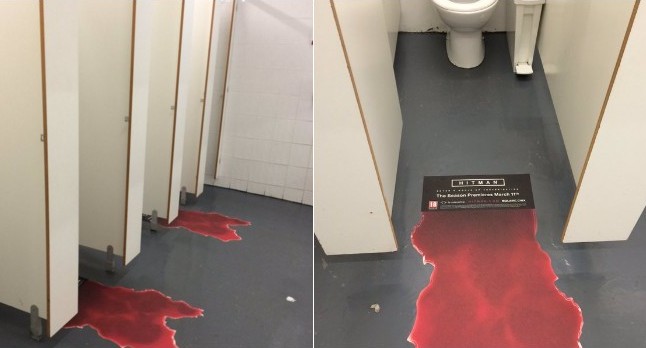 Специалисты Square Enix придумали довольно забавный способ напомнить геймерам о скором релизе Hitman. В кабинках некоторых общественных туалетов на полу появилась реклама, стилизованная под лужу крови, вытекающую из-под дверцы. Выше располагается табличка, которая и объясняет причину ее появления.