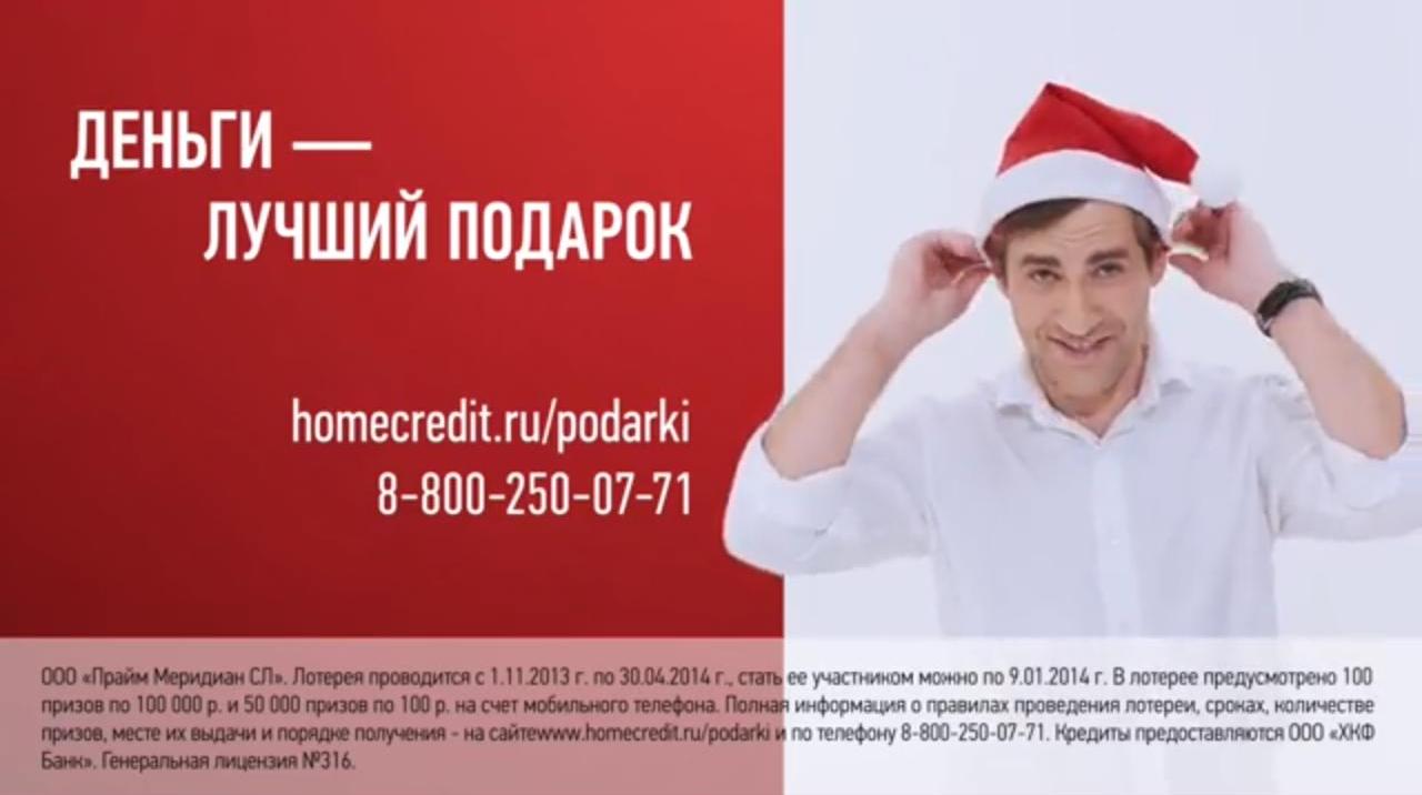 В видеоролике гражданин Пяткин, традиционно олицетворяющий в рекламе Home Credit плохие банки, дарит семье ненужные подарки. А сотрудник Home Credit предлагает свой вариант идеального новогоднего подарка для клиентов - деньги, а точнее, лотерею «Деньги – лучший подарок».