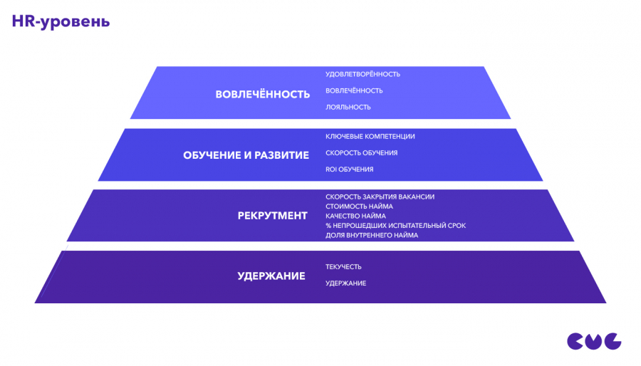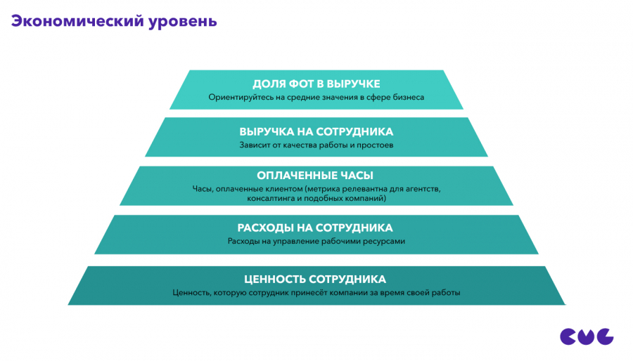 Метрики пирамиды мы разбили на три уровня: уровень бизнеса, экономический и HR-уровень.
