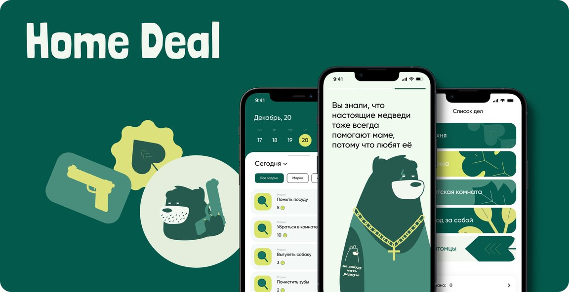 Home Deal — сервис, который помогает родителям и детям договориться и избежать бытовых конфликтов. Больше не нужно ни с кем спорить и никого уговаривать, приложение честно распределит домашние дела между семьей, а дети сами выберут себе вознаграждение за выполненные задания. Как итог, все останутся довольны результатом.