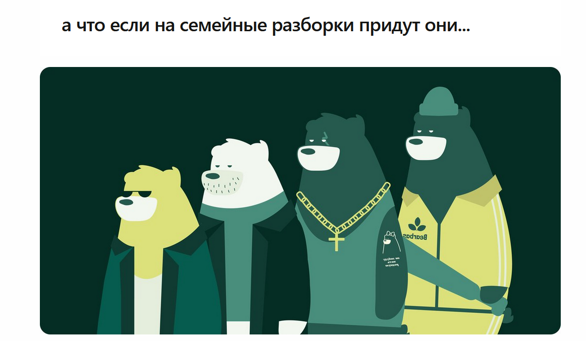 Образ медведя — это метафорическая отсылка к детской сказке «Три медведя», герои которой — дружная семья. В их доме всегда порядок, любовь и взаимопонимание, потому что все помогают друг другу.