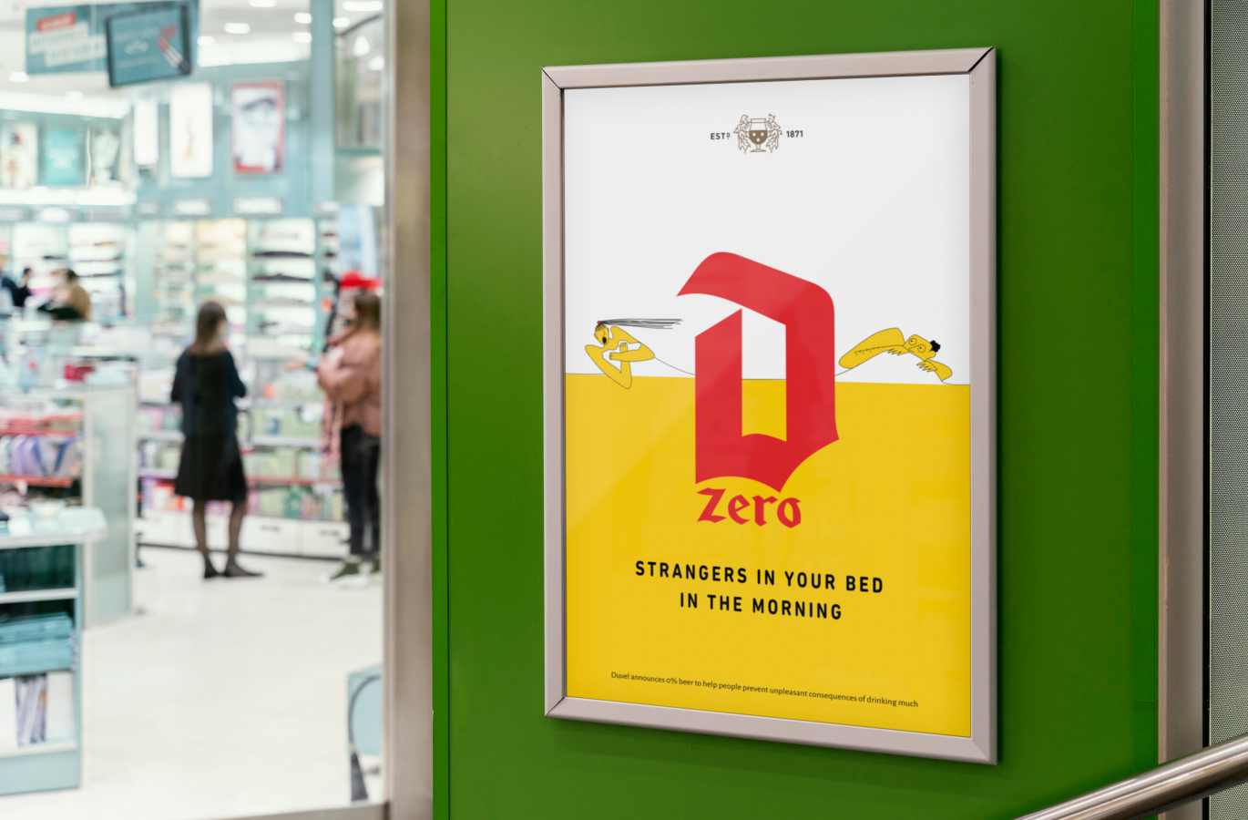 Посыл. «Пей пиво Duvel Zero, и будет у тебя Zero разбитых носов, незнакомцев в постели и видеороликов, где ты танцуешь стриптиз». При заказе «Duvel Zero» в баре люди получают бокал с иллюстрацией и бирдекель. На его обратной стороне они могут анонимно написать о поступке, который совершили в состоянии алкогольного опьянения. Самые интересные и неловкие будут проиллюстрированы на других бокалах.